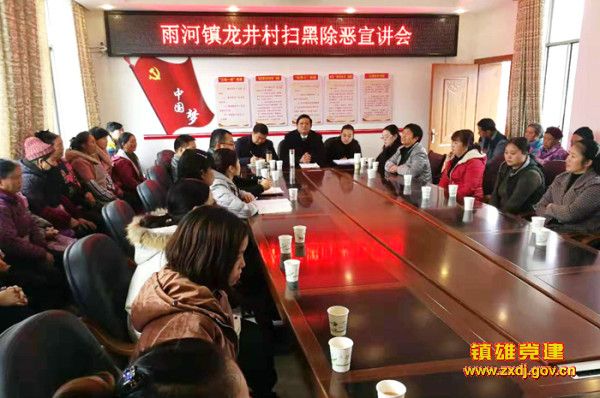 2019年2月23日,龙井村干部、雨河镇党委政府挂片干部及云天化集团驻村扶贫工作队全体人员齐聚龙井村会议室,共商就如何贯彻和落实好县委、县政府关于在镇村基层政权辖区内开展扫黑除恶专项斗争整治活动的通知要求。会议就扫黑除恶专项斗争的重要意义、目的要求、行动方案进行了阐述,对相关工作进行了安排部署,着重强调了各个阶段的任务和整治重点。会议决定成立组织领导机构,负责领导龙井村扫黑除恶专项斗争整治工作,一场扫黑除恶的专项斗争活动在龙井村拉开了序幕。