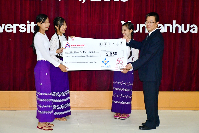 当天,耶津农业大学3名在读博士生、6名硕士生和20名学士生获得云天化总金额2.9万美元的奖学金及获奖证书。据了解,云天化2017年在缅甸耶津农业大学设立“云天化留学基金”和“云天化奖学金”,资助品学兼优的本科、硕士、博士学子们专注农业研究。三年来,60余名缅甸耶津农业大学师生成为“云天化留学基金”的受益者,58名学生获得“云天化奖学金”。同时,云天化驻缅企业——瑞丰年,为近50名耶津农业大学毕业生提供实习或就业岗位。(文/图:张坚 编辑:冉太云)