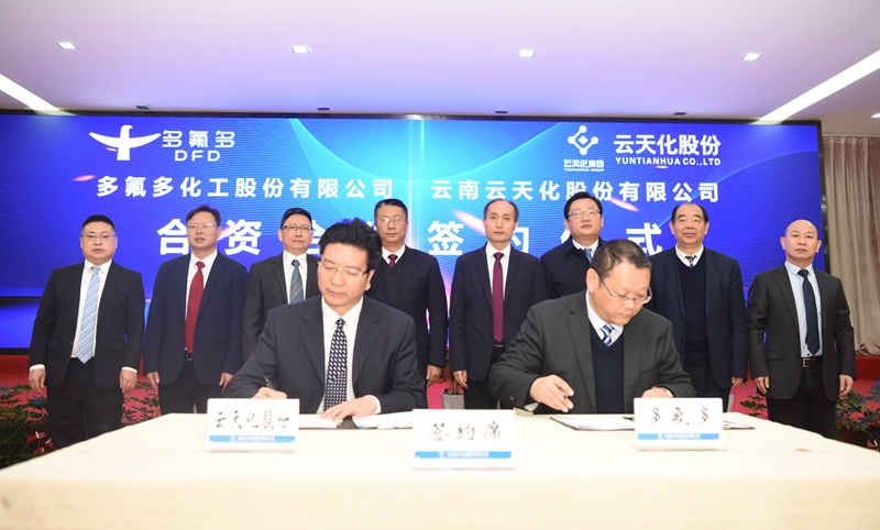 12月9日,公司与多氟多化工股份有限公司(以下简称“多氟多”)在公司总部举行合资合作签约仪式,共同出资设立合资公司,充分发挥各自优势,在精细氟化工、电子级氟化工产品领域开展深度合作。