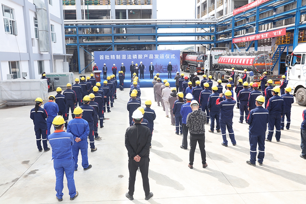 年产10万吨湿法磷酸精制项目是公司主动融入云南省“绿色能源牌”战略,配套建设年产50万吨电池新材料磷酸铁项目,进军新能源新材料领域的首个重点项目。项目于2021年7月10日动工建设,历时9个月左右时间实现达标达产,打破了同类型装置从施工建设到达标投产的最快纪录。
