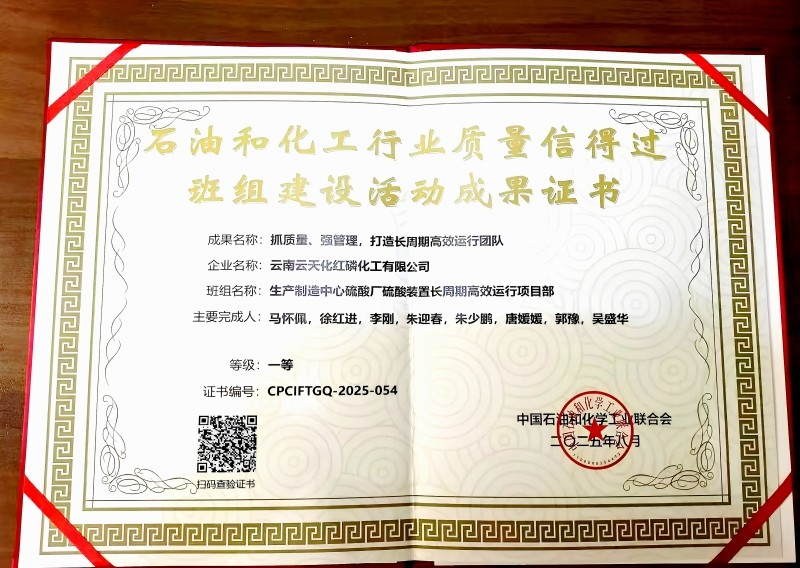其中,水富云天化检修一班QC小组《降低小空分1114JB曲轴箱润滑油金属颗粒含量》与凌云QC小组《降低硫酸装置焚烧炉天然气消耗》课题,凭借卓越创新与扎实实践,双双荣获一等成果。磷化集团晋宁磷矿无极限QC小组获评质量管理小组活动一等成果。天安化工“自控信息部”“硫酸业务工艺四班”“生产技术部磷化工分析室”“合成氨制造中心工艺二班”等7个班组获质量信得过班组一等成果。大为制氨合成氨制造中心工艺三班的《运用“PDCA”闭环管理建设“四好”班组》、生产技术部原料成品分析班的《推行“3331”质量管理法提升班组质量管控能力》两歌课题均摘得一等成果。红磷化工硫酸装置长周期高效运行项目部以《抓质量 强管理 打造长周期高效运行团队》成果,获评一等成果。